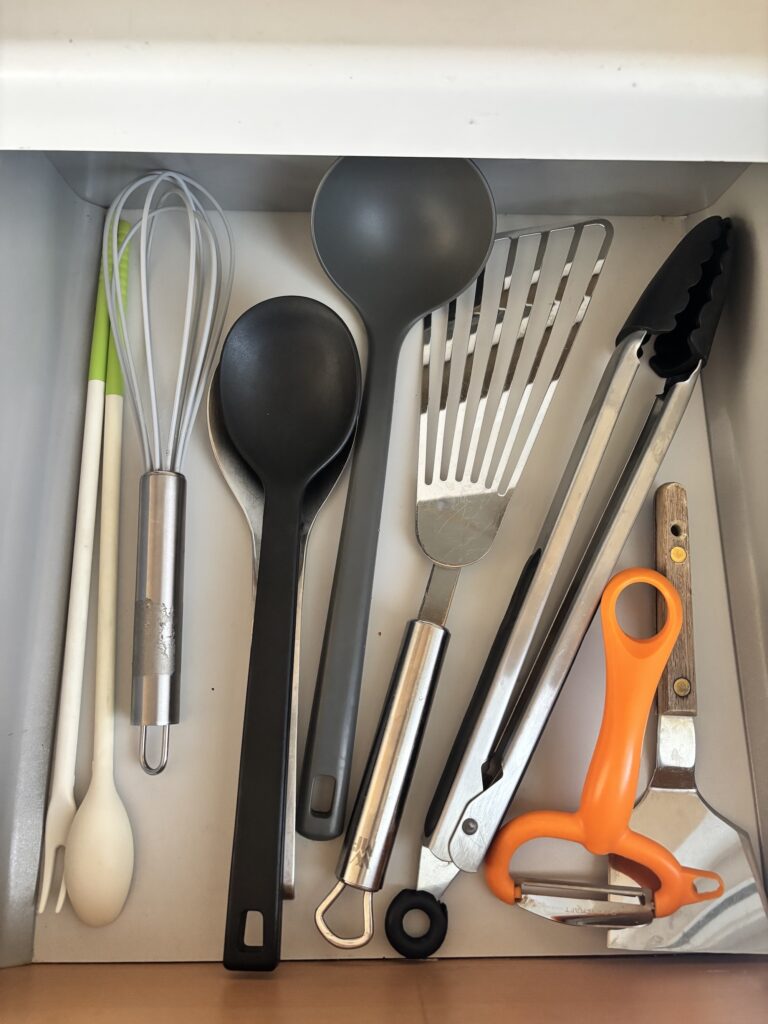 以前は、調理器具がわんさかあり、ごちゃごちゃと重なって入っていました。